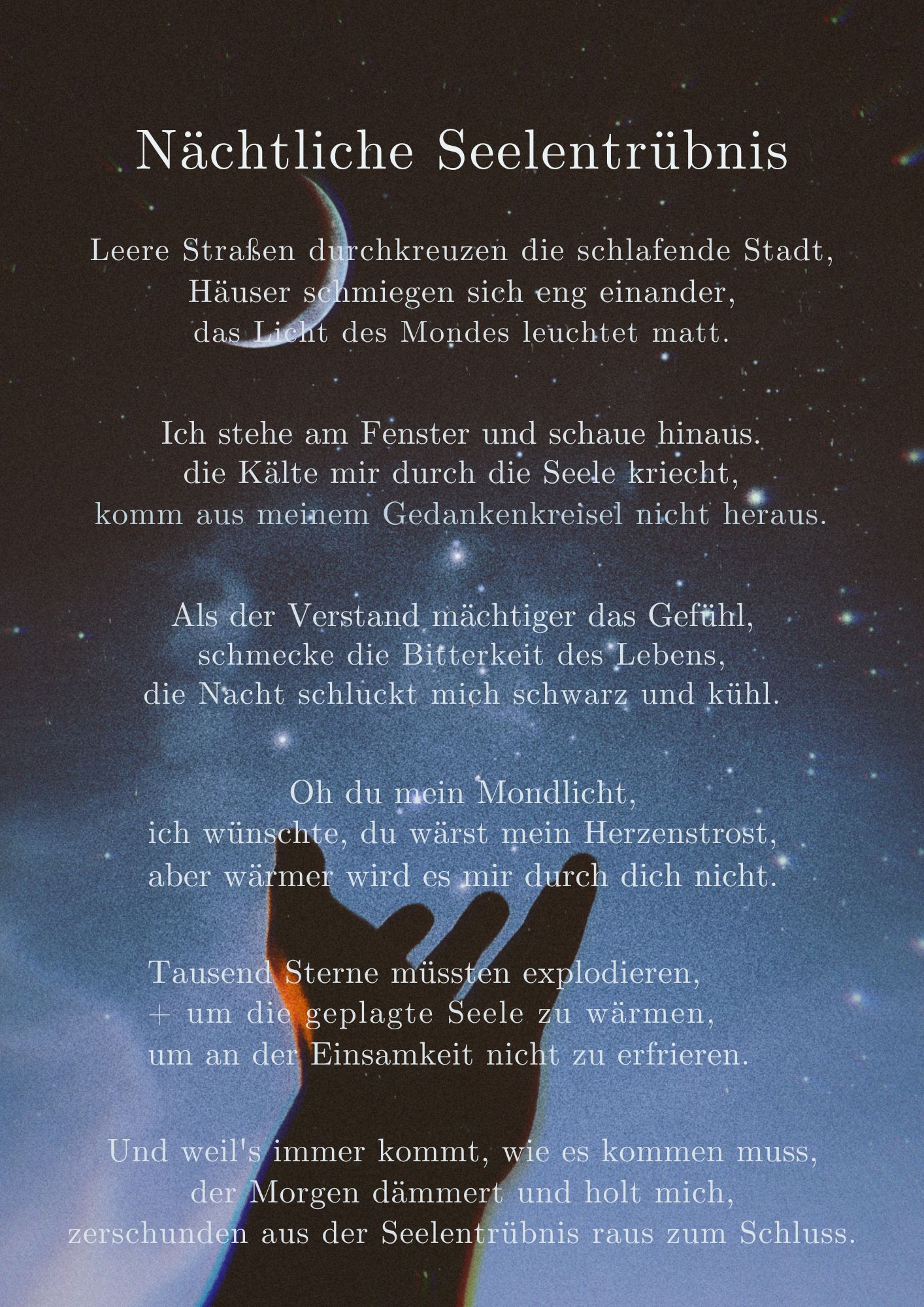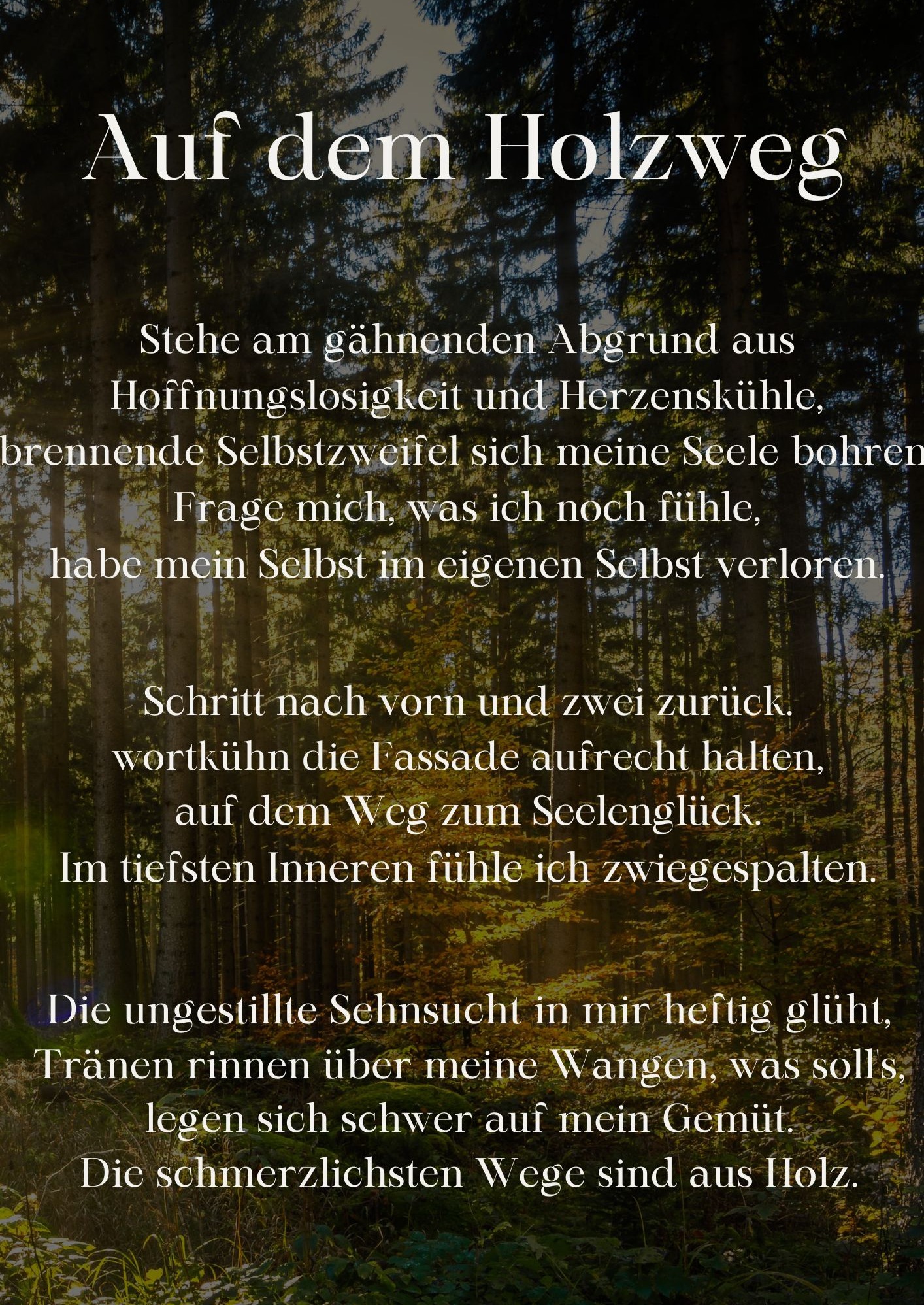 Gedichte bieten mir die Möglichkeit, meine Gedanken zu formen, zu verfeinern und sie auf eine künstlerische Weise zu teilen. Manchmal ist ein Gedicht, das ich verfasst habe, aber auch nur das Beschreiben eines Phänomens – ein Sachtext in poetischer Form.