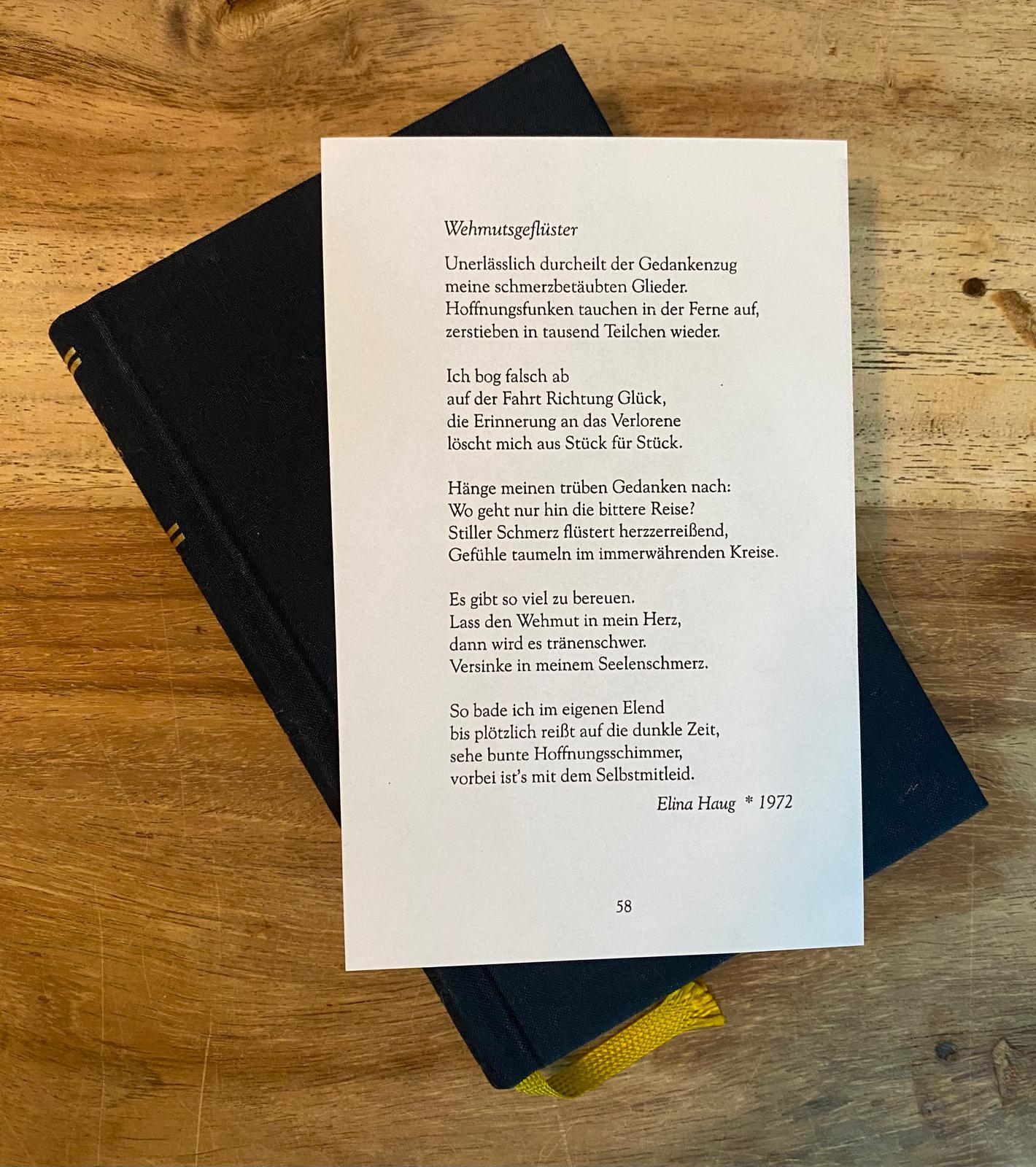 Der Zauber der Poesie besteht für mich darin, dass ich meine Gedanken und Gefühle auf kreative Weise ausdrücken kann. Ich kann mit Wörtern spielen, kann sie neu zusammenbauen und verschiedene Wortbedeutungen gestalten.